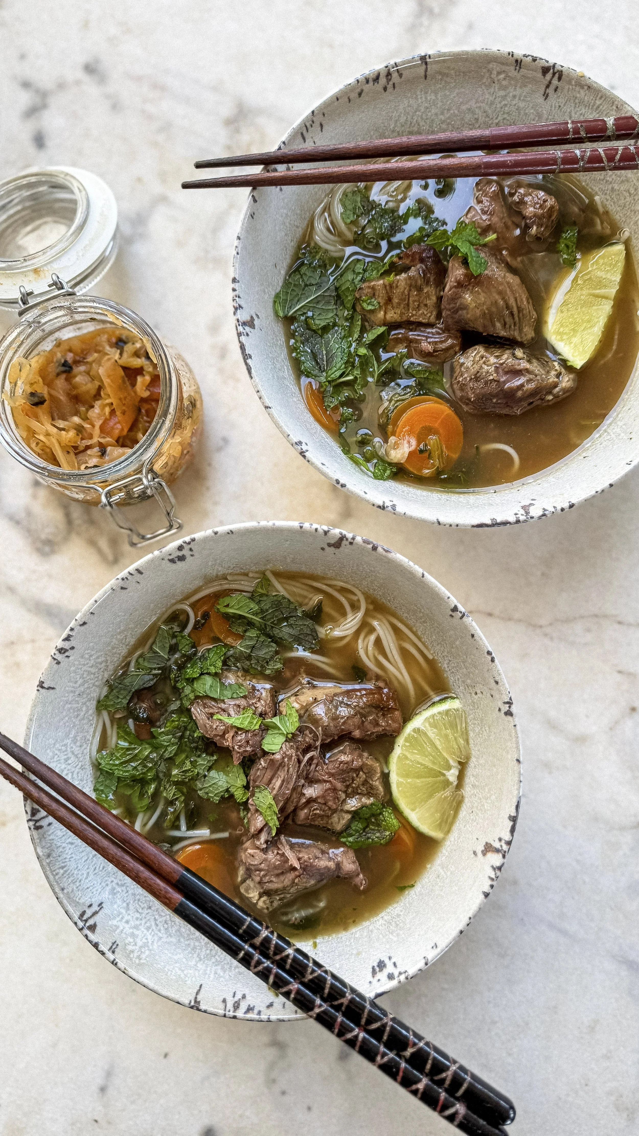 Slow-cooked Vietnamese-style beef noodle soup.